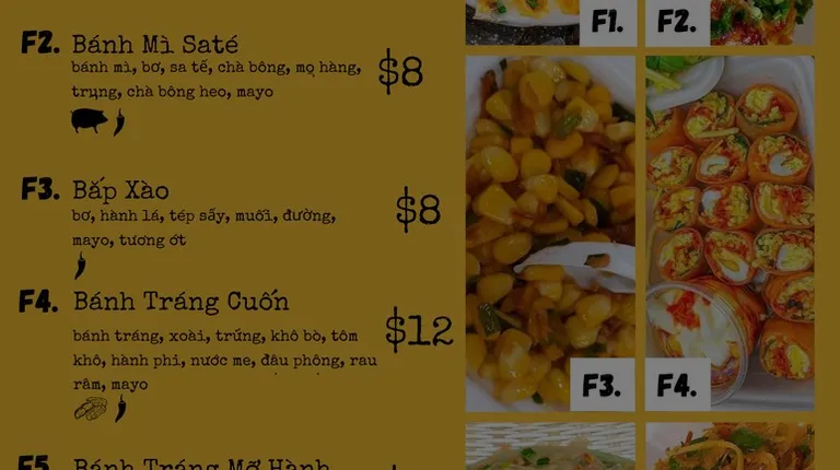 Real authentic Vietnamese street food. First time trying this and I would definitely be back trying the whole menu. I had an order of the Vietnamese Pizza and Sate Sandwich. Good size portions and full of flavor. Highly recommended. The menu is on the website and you call/text your order in for everyone asking.