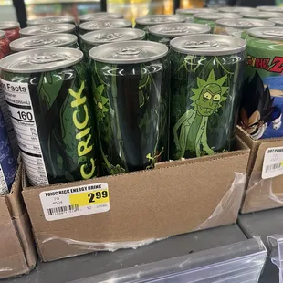 a display of canned food items