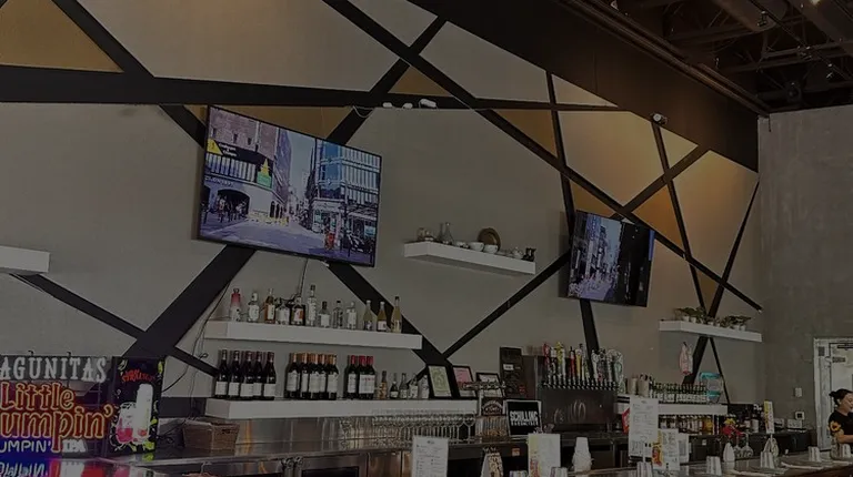 Outside. Storefront and outdoor patio. This Bowl'd BBQ location is at South Shore Center in Alameda.