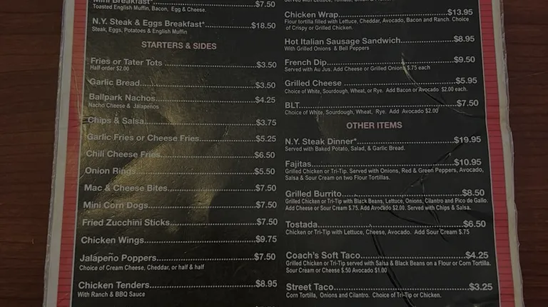 The food here is so cheap and is pretty good for the price. It's more of a bar setting with some longer tables but in general it's cozy. You order at the bar or if you sit at a table long enough the bartender will come to you and take your order.Food:-Garlic Tater Tots ($5.25) 5/5 technically it's not on the menu but we were able to get tater tots substituted instead of fries. These were super crispy and delicious, came with a side of ranch.-Bowl of chili ($5.75) 4/5 A decent bowl of chili that was super generous with the cheese and onions. It tastes like what you expect to get at a bar, ball game or at 7-11. I would get it again since it's so nostalgic.-Combo Sampler ($13.95) 5/5. Love the variety. Came with wings, onion rings, jalapeño poppers, and mozzarella sticks. Everything was fried well and the jalapeño poppers were so crispy and delicious. Came out super hot too. If you want to try a little bit of everything, definitely get this. -Fajitas ($10.95), 3.5/5. The fajitas were decent but I was underwhelmed. It came with a side of sour cream, salsa (tasted like jarred store bought salsa) and a small side of avocado. I wouldn't get it again but it was decent for what it was. I'd rather eat the fried appetizers.-NY Steak Sandwich ($16.95) 3.5/5. Again, decent but not great. It is still a great bang for your buck and for that reason I'd probably get it again. We opted for the housemade potato salad and it was good-- but probably could've used more seasoning or more salt. TLDR: fried appetizers are super crispy and fried well. Definitely would get the appetizers since it's so cheap and affordable.