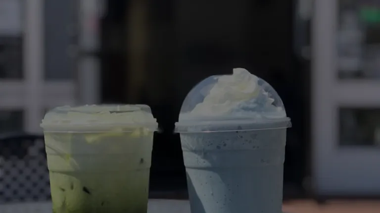 Front to Back: Pandan Matcha Latte, Ube Vietnamese Coffee