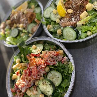 Salmon , king crab , shrimp garlic noodles , crab fried rice