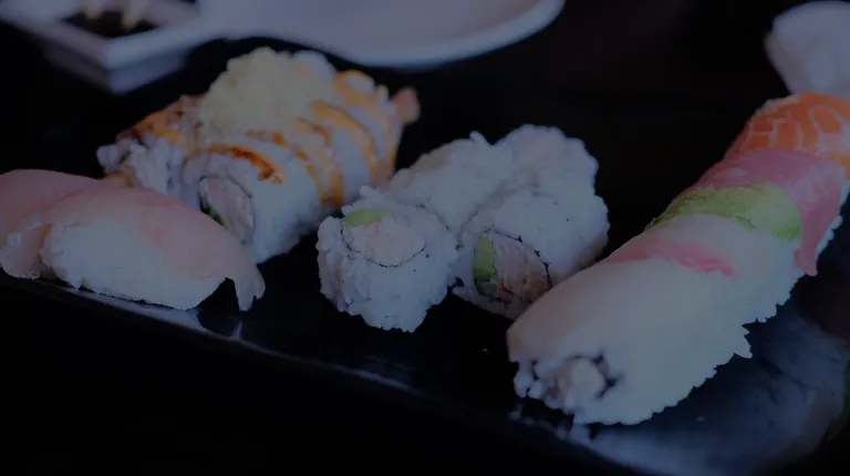 a close up of a plate of sushi