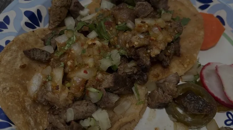 3 carne asada 3 Al pastor with hot salsa !!