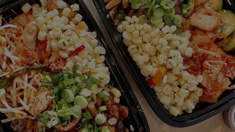This place is basically a Korean chipotle. The service was okay. There's some seating inside. I felt like the place can be cleaner. I got the firecracker pork with cucumbers, bean sprouts, and an egg. They also provide gochujang sauce and mayo. I couldn't finish everything because it was pretty filling. I wished we weren't limited to 2 sides. The food was okay. The firecracker pork was enjoyable and flavorful.
