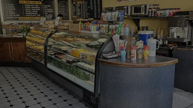 Bagels are fresh and delicious. The jalapeño bagel w/ cream cheese was to die for! Plenty of jalapeños to go around! Staff is friendly and quick. Tables to sit inside. Quick and easy. Parking available in plaza lot.