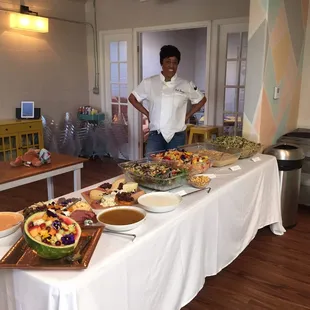 Jazzy's kitchen is just outright DELICIOUS! The food, taste, and quality was just superb. I used Jazzy's kitchen for my baby shower back in April of 2016. The display, timing, and quality of food was well beyond our expectations. Jazzy was courteous, professional, and punctual. She took care of the setup,clean up, and even supplied take home containers for our guest. I have a friend with a gluten allergy, and she offered to make a complete side dish for her, you cannot tell me that is going the extra mile! Half a year later, I have friends still talking about how yummy the food was from our baby shower. It was a lovely stress free event and I will definitely book with Jazzy's kitchen again!!