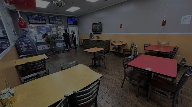 Dining area in front of ordering counter.