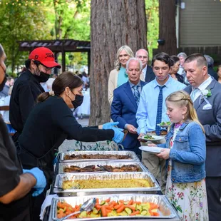 In my experience, wedding food is one of the most forgettable aspects of the event. Not this wedding food!!! Our experience with Aliki, Kostas, and the whole Kitchenina team was anything but forgettable. When guests go out of their way to tell you how much they loved the food you know they mean it. The kind woman managing the floor and general flow of service was Camille, and she was absolutely brilliant. She was so kind and accommodating, even when we made a mistake on the seating chart she handled that situation with grace and efficiency. Kitchenina is so fortunate to have Camille on their team. Every item on the menu was superb. The biggest hits were the definitely the Verde Mac and Cheese and the Chicken Satay, but everything was just wonderful including the Tri Tip and California salad. Guests are encouraged to come up for seconds or more. At the end of the night everything they cooked for you is packaged up to take home. Sadly, the Verde Mac and Cheese was so good there were no leftovers but we see that as a a wonderful sign! As the bride and groom we had a great view of people going to receive seconds and there wasn't a plate returning to it's seat without that mac and cheese, with the exception of our Vegan guests of course. Kitchenina was so accommodating to our three Vegan guests. They were able to make Coconut Tofu Curry and all who had it absolutely raved about it. I wish Kitchenina had a restaurant so we can eat from them again. The Kitchenina team is so professional and helpful as they help you plan your special day. The team they send on the day of the event is on point and everything moves along as it should. Our outdoor ceremony space was also used as our dining area. The Kitchenina team set up all tables and made our ceremony space a dining hall in the blink of an eye. They really were so efficient in all aspects of the day. We could not have done it without them!