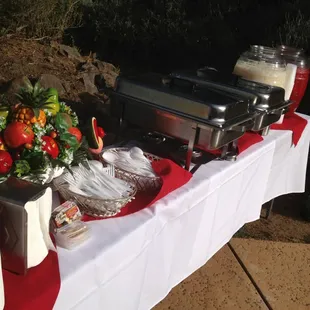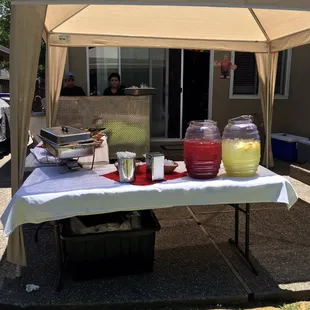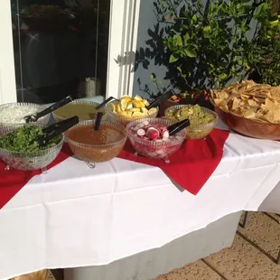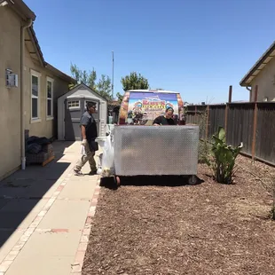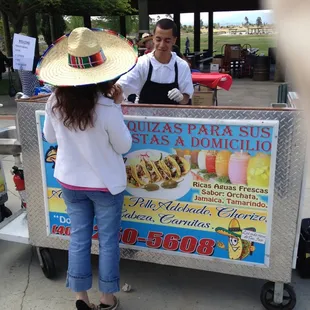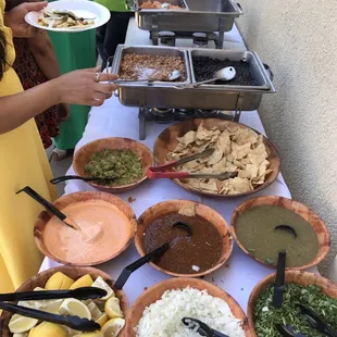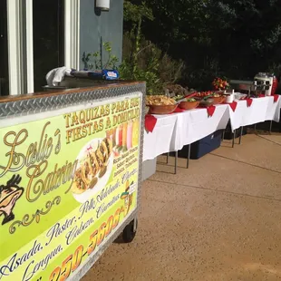 My cousin had her 21st birthday and Leslie and her crew (assuming her kids) catered our event for 2 hours, 50 people. The presentation and service was 5 stars, food was 4 stars, but t the Jamaica juice was bomb!MENU:al pastor, chicken and carne asada. 3 different sauces1/2 re fried beans, 1/2 blackChips PeppersGuacamole OnionsTortillas Jamaica and horchata Also, lemons, cilantro, plastic silverware, tables and table coveringsThey have a van that pulls up, cart comes out/in and it was that easy. 2 hours is a short amount of time, but that's all the time needed, even though people come late. I think they should've told us to have additional storage/Tupperware for the leftovers, because people forget that stuff. Needless to say, I would recommend their services. We had several quotes, but they had the best pricing for the menu. Overall 4.5 stars
