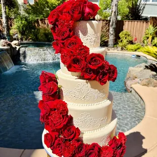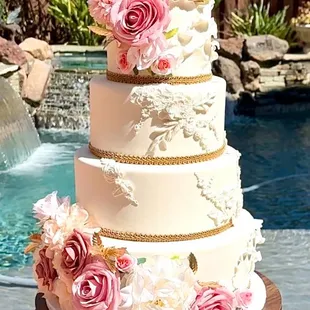 Maria provided a cake for our 25th wedding anniversary. It was stunning! So beautiful. The picture doesn't do it justice. She was great to work with. Easy communication and reliable. It couldn't have been more simple. I gave her some pictures of things I like, one thing from one cake, another thing from another cake, and she was able to combine into one beautiful cake. To top it off, it was delicious. Honestly, most wedding cakes aren't that great tasting, so I wasn't expecting much. But oh my gosh, it was so good and we got so many compliments on the cake and the taste. I'm not generally a big fan of the taste of fondant. Not sure what she does, but it was good and very smooth, not hard like I've had with some cakes. I would highly recommend her.