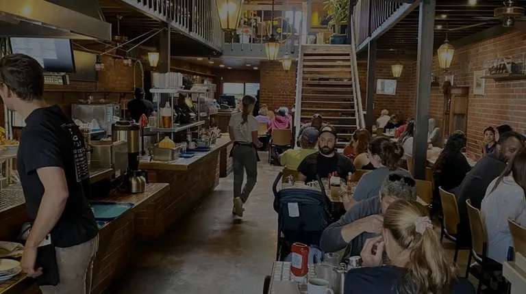 Came by on a Sunday afternoon and found street parking right in front. There's a kiosk at the host stand to sign up for the waitlist, but the employee seated me immediately at a cozy little table right next to the fireplace, cuz I didn't have a group with me to require waiting. I admired the restaurant interior with simple decor and exposed brick walls.Ordered the "create your own" scramble (mushroom, green onion, pork sausage, cheddar), with grilled tomato and toast. It was a small dish, the egg scramble light on the toppings, and a single tiny slice of sourdough. But everything was tasty, especially the grilled tomato that came on the side. They forgot my diet soda, and I finished my meal before I could ask for it a second time. But it was fine, I got it taken off the bill. Staff was friendly, though not apologetic about forgetting my drink.
