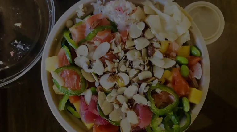 Family seems to like this place and order from here often. Typical order - regular bowl, sushi rice, protein: spicy tuna + salmon + ahi tuna, veggies: cucumbers & onions, spice level: mild, toppings: crabmeat + ginger + massago, eggs, sauce/seasonings: seaweed mix + sesame seed. I tried here a few times and always end up with mild tummy pain so it's not for me.