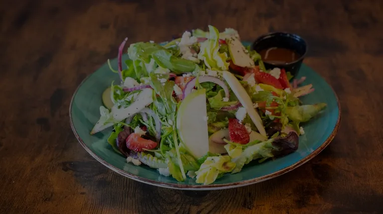 Red Apple Pizza; Hickory Smoked Bacon, Caramelized White Onion, Green Apple & our Creamy Garlic Sauce topped with a fresh Arugula
