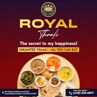 A thali literally means a platter, and usually has an appetizer , 2/3 mains, a lentil, and 2/3 kinds of breads. A rice and a dessert round up the experience, and unless noted otherwise Thalis are supposed to be unlimited. I grew up eating Thali at Golden star and Chetana in Mumbai, so the bar is very high. Having said that, Royal Thali does a fine job of serving freshly made tasty dishes, served with abundance. Their menu is different each day so there is no fear of being fed day old leftovers. Eveything from the vegetarian curry dishes to the breads are always small batch made so you really are eating them piping hot. We've been here twice already and both times I have found atleast 2/3 items I really liked so for the price point, it's a win-win. Veer is the main server and he and his team ensures you leave happy and well fed. So if you are in the mood for an unlimited thali any day of the week , head over, but only after you put on some comfy pants!