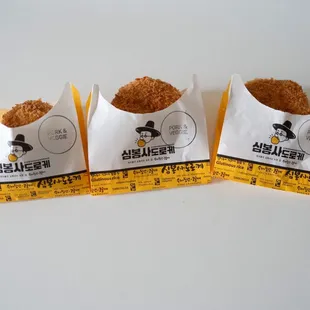 We were craving a Korean snack and came across Simbongsadoroke.We tried the following 3 croquettes:Spicy Pork - (5/5) this was our favorite! The spice is definitely present and we were warned about it but thankfully we LOVE spicy food and can handle a hefty amount of it at a time. The dough was chewy and balanced the spicy pork flavor. We went back and ordered 3 more of this to share with our family!Pork & Veggie - (5/5) this was our second favorite. Pork is juicy and veggies added a new flavor profile to each bitePotato corn & Cheese - (4/5) this croquette surprised us. The potato and corn flavors came through instantly and had a hint of sweetness to it. We enjoyed it and would recommend it for anyone who is vegetarian.DONT FORGET THE HOUSE MADE SAUCES!! We loved the spicy mayo but their sesame mayo is really good as well!Price: very reasonable! For 3 croquettes it was $13 including tax. The size and density of each croquette was enough to fill you up if you wanted an appetizer before a larger meal. We immediate went back to get more and ended up picking Set B ($26) - 3 twisted donuts (one of each flavor: original, black sesame, injolmi) and 6 croquettes (3 spicy pork, 1 pork & veggie, 1 potato corn & cheese, 1 pizza)Staff: friendly and happy to walk us through the menu + options!Location and Ambience: it's right next to Amazing Katsu in the corner of the Event Center of the plaza. The area was clean and busy!