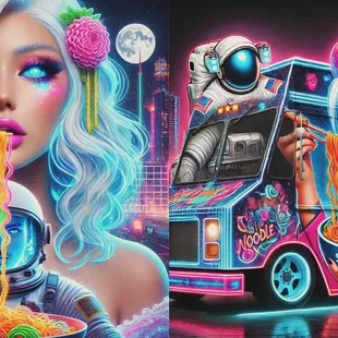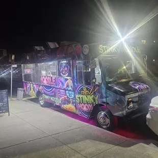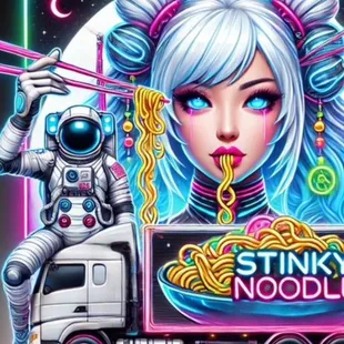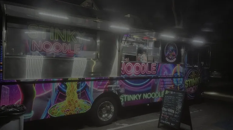 The truck is Awsome. Its like bubble gum for your eyes..lol. The guys working it where the owners. Both of them where friendly and really funny. The menu has some surprises tho. The deep fried pbnj was amazing. I ate it before anything else. I had the chicken katsu on a bed of udon garlic noodles. I wish more places offerd this noodle. Other than not having a straw for my pepsi it was one of my better food truck expiriences. I hope to see more of these around town;) Thank you Stinky noodle..