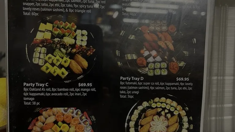 This is our go to take-out sushi joint. Our house favorites are:InariCalifornia rollAvocado cucumber makiSpicy crunch krab makiY2K roll (shrimp, krab, cucumber, avo)Beluga rollDouble HamachiBento #5Shrimp tempuraSide of tobikoSuper friendly staff. Awesome take-out sushi. There is a parking lot which can be busy, but I've always managed to find a spot, and often you can find parking on Buena Vista. It's in a market place with lots of other great vendors. If you're dining in, inside there are tables near SIPS global teas and Barons, and also a counter by Feel Good Bakery. There are tables outside along Buena Vista, and also a patio area outside the main entrance near the parking lot. I think the low rating is strange. The food is fresh and yummy, like I said it's our go-to take-out sushi spot. It's not Utzutzu, or Kiss Seafood (formerly in SF now closed, so sad, best sushi I've ever eaten in my life), or any other super high-end sushi restaurant, and it's not pretending to be. For take-away sushi or even casual dine in the quality is very good.