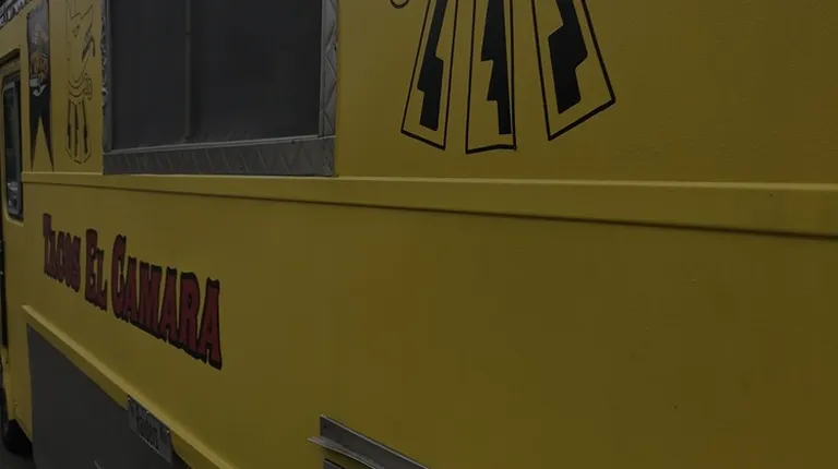 a taco truck parked on the side of the road