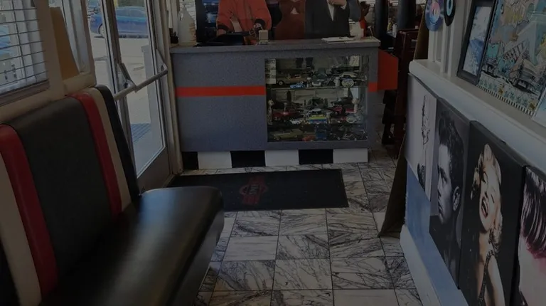 It is rather retro, perhaps in a rather forced overembellished way.We came here for a later lunch, 1:45, and there were a few patrons. There's a variety of seating, counter, booth, or chairs. We opted for a booth, but it was so uncomfortably low to the table (we felt like little kids) that we moved immediately to a nearby table and chairs.Service brought menus right away, but it took some time to get water and asked about drinks. We were presented the menus, and the server took off, pronto.The menu is extensive enough for any meal, breakfast, lunch, or dinner. Yet, it very much is a typical middle-of-the-road diner, with the usual fare. I opted for a burger, the "Blue Moon Burger," charbroil (when have you seen that last). It comes with melted blue cheese and grilled mushrooms. Lettuce, tomato, and sliced pickle on the side, and I got it with fries.The meal was tasty enough, but the burger was difficult to eat. The bun was so soggy that the entire thing fell apart and impossible to pick up and eat. I had to fork and knife it, which was most unfortunate. It literally was a mess. Burgers, as good as this could have been, shouldn't fall apart.The fries were run of a mill, not bad.My dining partner had the Cajun Chicken Sandwich, and it looked wonderful. I had an ice tea for my drink.Service was OK, yet you could tell it was downtime for them.Overall, the experience was OK, but I wouldn't go out of my way to eat here.