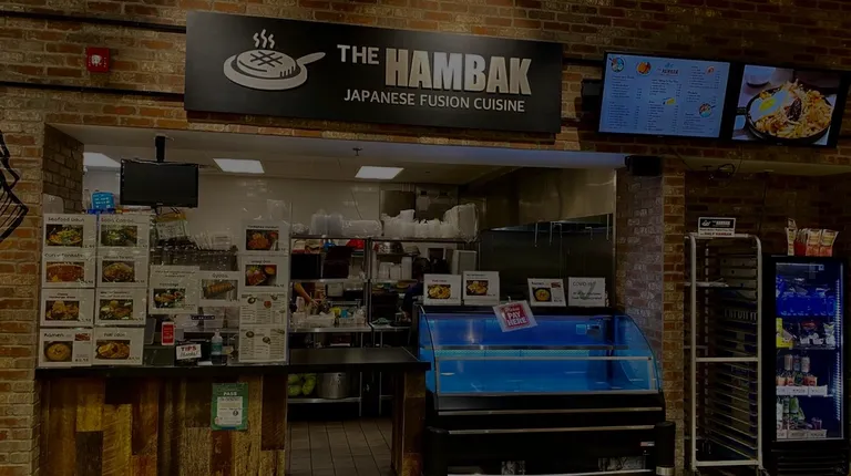3.5 stars but rounding up for their delicious mushroom sauce. Located in the food court of H Mart, you'll have to go inside the grocery store and go to the left hand side to find The Hambak. I placed my order at 4:45pm on a Thursday, and it was ready in about 15 minutes. They were already out of their regular California rolls by that time, but the tobiko version (slightly more expensive) were still available. I tried:-Original Hamburger Steak (w/Mushroom Sauce, Sunny Side Up Egg, $15.95, https://www.yelp.com/user_local_photos?select=lxnZ8mVaiAb3SyLIjnGTLg&userid=76vIFZcC7owykCBjMfGVXg): Yum- that mushroom sauce alone is worth checking out! It was super flavorful, but on the rich/creamy side, so avoid if you're looking for healthy food. The hamburger steak itself was a little dry, probably slightly overcooked, but it was solid with the sauce, egg, and rice. It was also a large portion, and easily enough for two meals for me- recommended!-Side of Tonkatsu ($9.45, https://www.yelp.com/user_local_photos?select=dvxSbpeSk8ma2i3Wv-zuaA&userid=76vIFZcC7owykCBjMfGVXg): Surprisingly good, and I loved the crispy exterior. The tonkatsu was really flavorful on its own, and I liked the subtle sweetness. It was very slightly dry/overfried, but still really good. They didn't serve this with a side of tonkatsu sauce- not sure if it was missed for my order, but worth checking. I used some of the mushroom sauce from hamburger plate and also ate some pieces on its own. Recommended!-Tobiko California Roll ($7.95, https://www.yelp.com/user_local_photos?select=XcAF3y4qwoLgS8Ux74t2ng&userid=76vIFZcC7owykCBjMfGVXg): Eh, just ok. I like my crab salad to be mixed in with a good amount of Kewpie, and this version was pretty dry. I would only recommend ordering this if you're really craving a California roll.This was a solid experience overall- I will be back for more of their mushroom sauce, and also to try their other dishes. Their staff were still wearing masks despite the mandate being lifted, and they had hand sanitizer. Indoor seating was available in the H Mart food court, but I did not see outdoor seating. There was parking in this lot, but it can get busy/crowded.