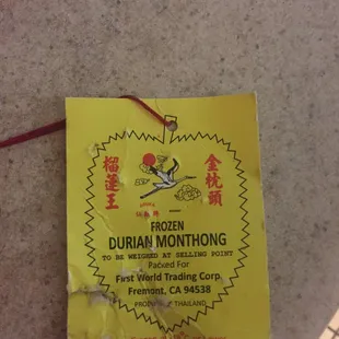 Musang king pulp (with seed) from Malaysia. Imported by Rockman Co. $17/0.66lb = $25.76/lb