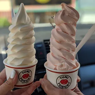 I've heard many positive reviews of Yumi Yogurt over the years so I was excited to finally see what the hype is about! It's located right before the Stevens Creek auto mall. They're known for rotating their flavors and only serving tart yogurt on Sundays. What enticed me is they have THREE carbolite froyo flavors on rotation. Great dessert spot for a macro friendly treat! They have boba drinks, froyo, ice cream, milkshakes, and more! Even lactose free desserts. You can find their flavor rotations on their IG page. 4 stars because they don't do samples..which is a turn off for new customers such as myself..they do half and half which is nice in case you're split between two flavors since you can't taste them. It's kinda pricy and not self serve but their servings are very generous. I shared a small with my friend and as you can see it's A LOT. We shared the carbolite peanut butter caramel and the pumpkin cupcake. Both sooo good!!
