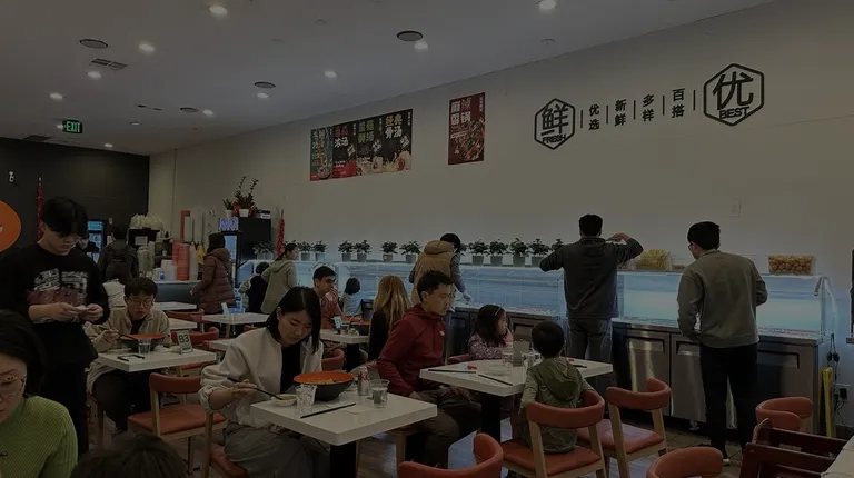 Me and my boyfriend came here for lunch a few weeks ago on a weekday. It wasn't very busy as it was an early lunch time! For those who haven't had the experience before, you wait for a host to assign you a number and then you grab tongs and your bowl. You're required to have the minimum limit of 1.5 lbs in your bowl, and you can add whatever you'd like to your bowl. If you want rice, you just ask for it at the counter when they weigh your bowl. I personally recommend the medium spice bone broth--super great! The ingredients are very fresh, and there always seemed to be a worker making sure everything was neat and organized. For lunch, you get a free drink. Make sure to go to the sauce bar and make a sauce, too! All in all, food was so delicious and I enjoyed it more than the prepared hotpots as I can get to choose the things I like, and not waste the things I don't like to eat. We went for dinner again a few weeks ago, and it was super packed and busy. You'll be sitting super close to others and it's definitely hard to hold a convo with it being so loud. I'd recommend trying to go for lunch, unless you don't mind the closeness and how loud it gets!