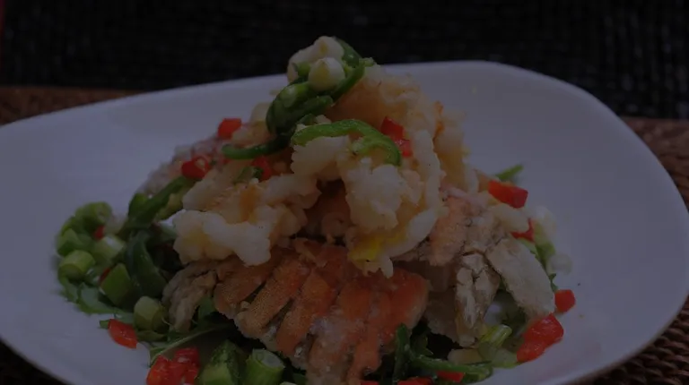 a plate of food with shrimp and broccoli
