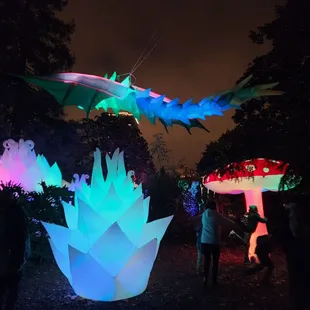 Way better than I expected! Loved checking out the colorfully illuminated art displays this past Saturday, and endless pathways weaving through the beautiful gardens filled with gorgeous flowers and greenery, along with ponds, small waterfalls, adorable bridges, and even bee hotels (or airbeeNbees). My favorite features include the neon bonsai exhibit (which even had koi fish made out of lights), the luminescent grand piano with ambient melodies entertaining visitors, and the trail of quirky and assorted gourds (especially the bunny themed!). Great for couples, but also family-friendly, with several kids' activities on site. A food court included about 6-8 food trucks and a small seating area (we enjoyed some yummy empanadas from Javi's Cooking). The decor for the event was not cheap-looking, and the setup was unique and charming, with various art forms uniquely demonstrated. It was definitely great value for a pleasant evening in an enchanting atmosphere. Yes there was a long line for entry, but it was totally worth it, and I recommend dedicating at least one and a half hours to get the most out of your experience.