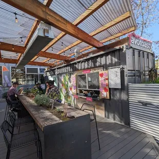 Location is a little tricky and parking is not great. It's a converted container on a wooden patio, it shares a space with a coffee bar. One person working, (digital payment only!) and he took my order promptly. It took about 10 minutes to get my order. It was warm, I don't know why I didn't expect it to be warm. But it was tasty. The sourdough was very good. I'd definitely go try them again when I have more time.