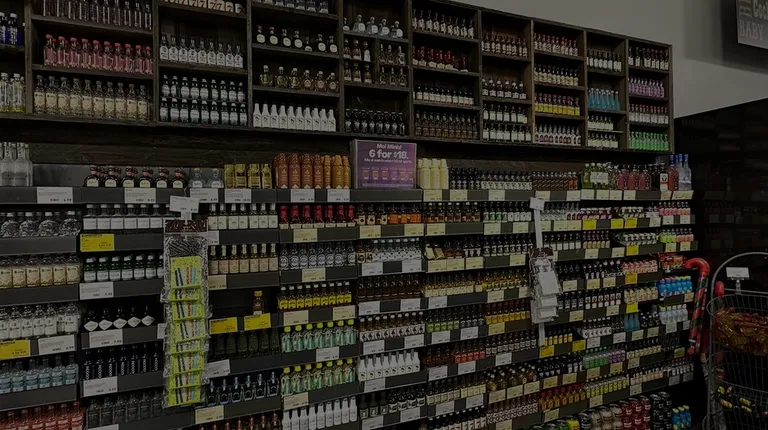 the aisle of a wine store