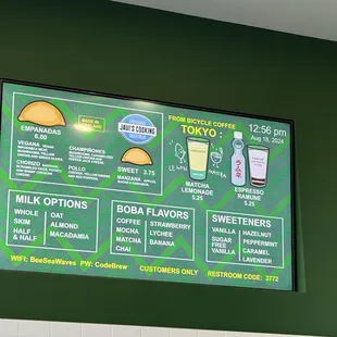 menus on the wall above the counter