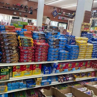 Blue & Gold doesn't look like much but it's been here for 18 years so they must be doing something right.goods offered: groceries, mainstream beer, hard liquor, small bottle winessnacks. eats: 2/$1 chips-smartfood popcorn with cheddar cheeseawesome! all-natural ingredients 5 stars-ruffles cheddar cheese and sour creamyummy and crunchy 4 starsnotes:-no lotto (religious prohibition?)-store closes at 12:15ish daily for prayer4 stars for the chips, 2 stars for sparse, pricey microbrew selection.