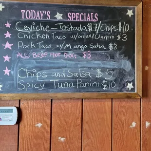 This is a great dog-friendly dive bar with wonderful food. There are tables outside. There are a few parking spots in the lot in front. I suppose this is a throwback to the days when this was a bait shop. We ate outside, the interior looks small.My friends had chips and salsa, a grilled cheese sandwich with pickles, and a slider. They had beers. The doggie had a beef patty and water. I had the ceviche and a glass of red wine. It was perfect, this dish often has too much vinegar, and this one did not. I would like to go back and try some of the other food. I really enjoyed the meal and the location. I hope to stop here again.