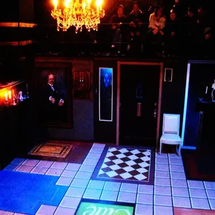 Review #600During its last week in production, I took my sister to see Boxcar Theatre's take on 'Clue.' Tickets were $35 each (I missed the discounted Goldstar tix) & worth every dollar. Located in an alleyway off of seedy 6th street, I had my bf chauffeur us to & from the show. I loved the unique set up: you climb a flight of stairs to take your seat (there are about 49 chairs lining the perimeter of the stage) & look down at a living, breathing rendition of the boardgame. Each section of the stage is a 'room' (library, kitchen, conservatory, etc) that the actors manage to squeeze themselves into, almost on top of one another. If you've seen the movie, the play & the actors were right on the money. There were references to bad acting & even worse editing. And just like in the movie, all three endings were revealed.Decent acting, super intimate venue & clever use of a tight space. Being several feet in the air was such a different, fun way to enjoy a show. Theater on a small stage does not get any funner than this. Plus, gotta love the wallet-friendly ticket prices. Five stars for the overall experience, four stars for the theater & acting. There was a crowded concession stand selling drinks like 'Professor Plum Wine' & 'Ms White Russian.' Cute detail!