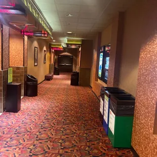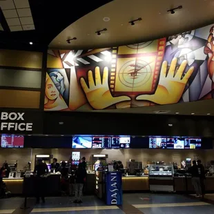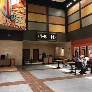 So first off need to go downstairs past food court in mall, escalator broken, so hike down or for disabled crame into elevator. Entrance to theater doors look like entering some random back room.2 ticket sales people, 4 or 5 ticket kiosks, couple food lines. Standard movie eats, candy section sucks. 5 total screens. Seats are reclining style but whoever thought of this version should be beaten, most uncomfortable recliners ever made, chair hikes up your butt, lowers back to far and legs dont go all the way up, sat without recliner for 99% of movie. To exit your herded past bathrooms so crowd, then right back into packed food court. First and last time here and live less than 5 min away. Union city still best theater, food and recliners are the best
