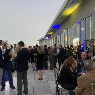We attended a company anniversary party here in SF with about 500 people. The views were amazing and it was almost a pleasant evening outside with no high winds. It did get a little chilly later. There were 4 food stations available plus lots of drinks. Great place to hold a big company party or even a wedding.