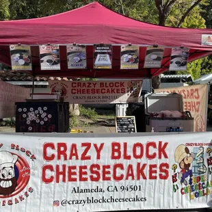 Crazy Block Cheesecake is my new go to for my cheesecake fix! I've tried about 4 of their cheesecakes and I'm hooked!! This place showed up on my feed on Instagram and seeing that they are always at the Irvington Farmer's Market in Fremont every Sunday I knew I had to try them out.What really drew me to want to try them is the owner. He's very upbeat, full of energy, has a great spirit and personality but most importantly he believes in the product he's selling. He uses the best ingredients and the cheesecakes are made with love. He has been doing a world tour the last few weeks and has added so many different varieties of cheesecakes to his menu that represent different countries and I love this concept. I've bought the Strawberry, Tiramisu, OG N.Y. Style and Henny Praline. While all of the cheesecakes were very good I would say that the OG N.Y. Style and the Henny Praline were my favorites.The OG N.Y Style was so creamy and decadent, the cheesecake itself isn't too sweet and they sour cream layer on the top complimented it well. I love the graham cracker crust too, it seems to have a bit of a caramelized flavor to me and it's not super crumbly. The Henny Praline was so unique, the henny flavor wasn't too prominent and it was so flavorful. The streusel topping was so divine, I loved it. The Strawberry cheesecake was good and very creamy, it is basically the OG N.Y. but topped with fresh strawberries. The Tiramisu was really good as well if you love a strong coffee flavor.Overall, I will be back as the flavors change weekly and the cheesecakes are so good.