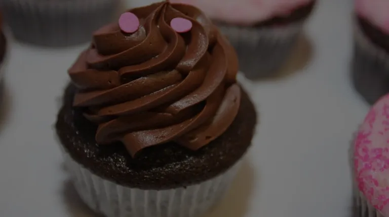 chocolate cupcakes with pink frosting and sprinkles