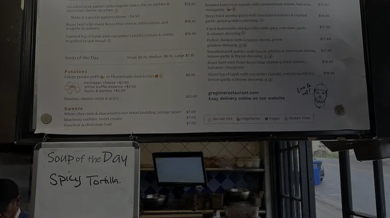 Bless this place and may it live on for many more years to come!My sister and I both went to Berkeley. She introduced me to the magic of Gregoire potato puffs one day when we were students, and the rest is history!!!Whenever I come here, I have to get the potato puffs and sometimes I only get the potato puffs lol. It's also a great spot to get my poutine fix, because I'm Canadian! I hope that potato puffs and poutine never leave the menu. Meanwhile, I recently tried their fried chicken sandwich and the corned beef sandwich! I actually really enjoyed the corned beef sandwich. The bread was like the bread you'd get on a grilled cheese sandwich. The taste and flavor was on point. The fried chicken was honestly not my favorite but mainly because I prefer dark meat and this was all white meat! I prefer like Popeyes lol for fried chicken. In any case, most everything is delicious here and it's truly a gem! I'm glad they're still alive and well and I hope they are a staple of the Berkeley food scene for many more years to come! Also they have a great, worthwhile rewards program! I shall continue to be a loyal customer here. There are maybe only four tables total for outside seating, so try to come at a non-prime time to snag a table or you may have to eat in the car! Street parking may be tricky as well depending when you come but doable!