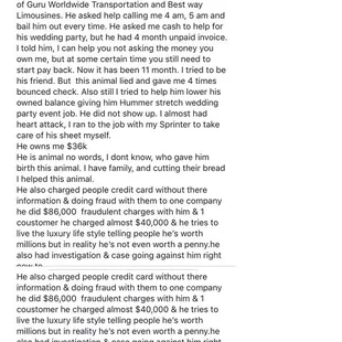 Never ever book with this company. Me and my cousin were trying to look for some cheap limo rentals and we found their website. We tried to call them today and he hung up while I was asking him how kuch it cost for a rent of limousine. And then, I tried to call him again because I thought I accidentally pressed the end button. But when he answered he said, "I already talk to you yesterday. And I said $100 per hour. I remember your voice". I was like: I DIDNT EVEN CALL YESTERDAY EVEN FOR ONCE. And then he hung up again. My cousin tried to reach the frontdesk to ask for their manager and then he said he's the manager. My cousin ask him if thats how they treat their customer. And he was like, "I already told you how much it is, and if you're looking for cheap rentals you guys should take an uber". I know its annoying if you already got called by the same people for like 4 days in a row but the thing is we didn't call him even once yesterday and the other day. He told us we already called for like 4 days in a row and he remembers our voice. Like wtf? DUDE U GUYS SHOULD CLOSE YOUR COMPANY.