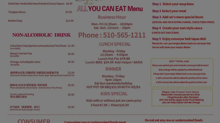 I was recommended to come here for AYCE hotpot & who can resist AYCE hotpot?Overall, I felt that this spot was pretty good. I do like that they offer a wide selection of hotpot broths. I think it's great that you can have both hotpot & grill at the same time. I know certain places have you choose one or the other. Here, the items are on a conveyor belt going around the row allowing you to pick your toppings. It's an interesting touch.I ordered the Tom yum soup and it was sour! I thoroughly enjoyed as it has great flavor. They also have a sauce bar for you to make your own sauce & definitely a plus that someone does clean the area often making it sanitary for other customers. The meat we were on the premium menu auch as lamb, wagyu brisket, deluxe marble beef. They came out really nice & the cuts were pretty big too. Thus establishment uses a QR code to order & the meat would come out fairly quick. They have booths however, I wish it was sturdy or bolted in as the floors were slippery. So if you were not paying attention, the booths would slide. It was a good 8/10 for me. If I were in the area and wanted dinner, I'd come back.