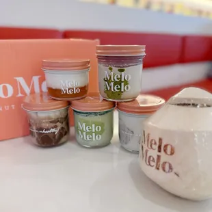 Omg the interior decor was modern chic with some pink cutesy elements like I was obsessed!!!the service was also amazing!! the girls at the front were so sweet and accommodating especially with explaining what each dessert entails. i got the banana nutella coconut. so soft and creamy!! the banana and nutella flavors also went well with the coconut!! you also get to keep the cute glass jar!! also they told me that when you bring in 10(?) empty jars, you get a free coconut dessert i believe! so excited that they brought melo melo to the bay!! definitely recommend if you're a huge fan of coconut and healthy/vegan desserts