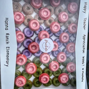 Ordered the mini Mochi donuts for my daughter's birthday over the weekend! Wow, my family devoured the donuts in less than 30 minutes!! Apparently, I did not order enough . It was so sweet of Eric to write a birthday message for my daughter! The little message made it personalized for her little brain!! Will definitely order again, and lots more,