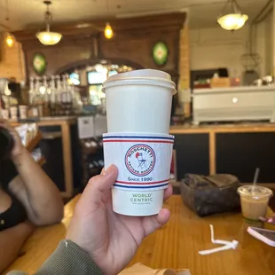 a hand holding a coffee cup