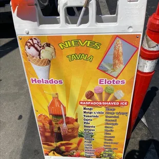 Nieves Zavala is near corner of 98th ave. & Bancroft. it's just outside a park on the Bancroft side. menu is apparent once one is in front of the ordering window. it's gear mostly for young adults, especially kids.offerings: raspados, ice cream, bionicos, tostilocos, mangonada, fruit cupss, crepes, sundaes, etc.eats: vasos de fruta (fruit cup) (7)- mix of honeydew, mango, watermelon, pineapple chucks. flavored with lime, slight chili taste.-very fresh fruit, nothing mushy. top quality value. 4.5 starstake outs:-they sell fresh mangos, other fruits, some mexican snacks, groceries in adjoining space.