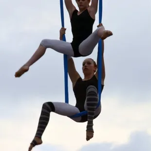 two young girls dancing on the street