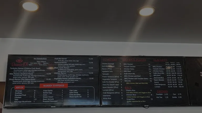 This place happens to be near something else I was already at and I decided to stop in and give it a shot for lunch. There seemed to be a lot of people (a few already sitting, some already gone with tables to clear and some at counter waiting to order) so I figured it was good to try! The menu had a lot of great looking choices. While the service was fast and friendly, unfortunately the taste and flavors just weren't there for me! Here's what I got:Tonkatsu ramen - the broth had a weird flavor to it, not sure if it's the water being used in the broth or what but I typically love the creamy tonkatsu flavors and this one didn't do it for me. I honestly didn't even want to finish it... ended up packing it up to go after about 5-10 bites (leftovers larger than togo box given)*eaten in the restaurant (and took to-go the leftovers)Hawaiian BBQ mixed plate - nice portion however all the meats had no flavor, as if they weren't marinaded and no sauces on them. I requested extra sides of teriyaki sauce. *taken to-goSpam Musubi- one order included 2 PCs. All the rice was on the bottom so it seemed there was a ton of it and ended up falling out and all over before I could get half way done. Again, no flavor or sauces. *eaten in the restaurant (and took to-go the leftovers)It was a cold and rainy day, I really wanted to like it but unfortunately everything I tried was meh!