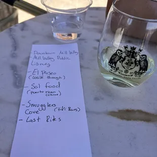 two wine tasting signs on a table
